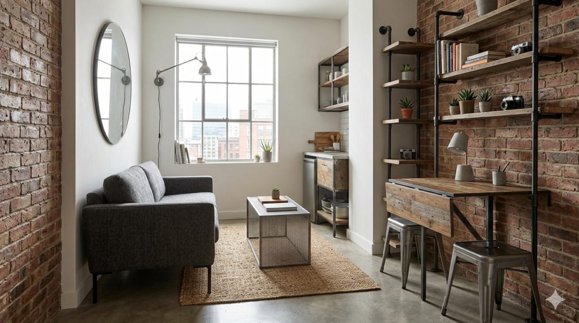 Industrialny styl w małym salonie – jakie meble wybrać, żeby nie zagracić przestrzeni?