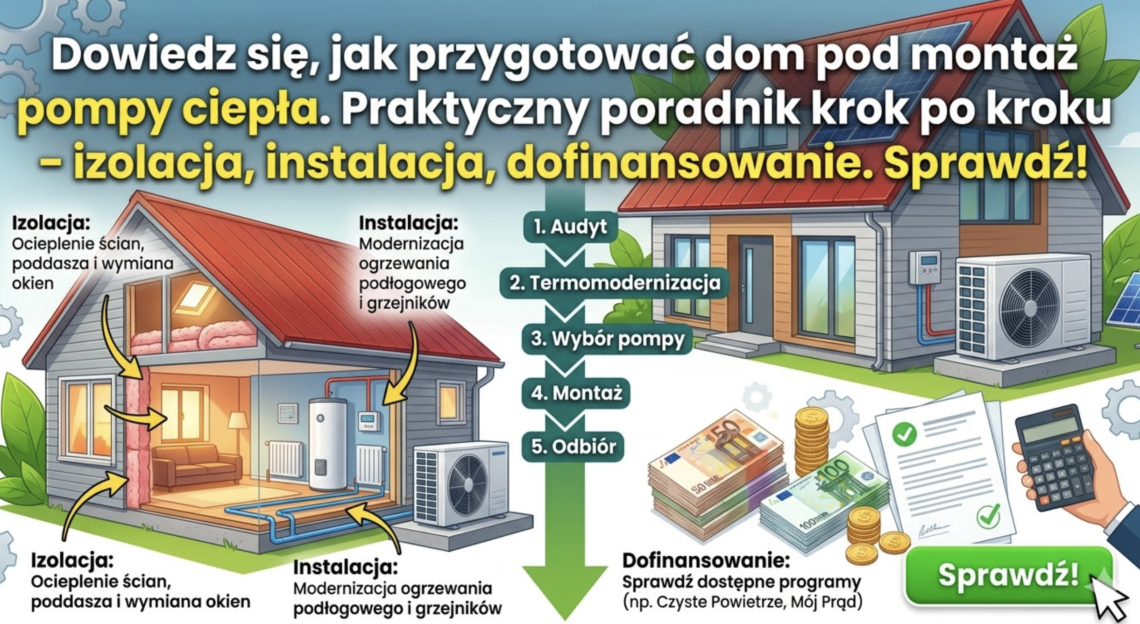 Przygotowanie domu pod montaż pompy ciepła to proces, który warto zacząć kilka miesięcy przed planowaną instalacją. Ocena izolacji, sprawdzenie instalacji grzewczej i elektrycznej, wybór miejsca na urządzenie oraz zabezpieczenie finansowania – to wszystko wymaga czasu, ale dobrze zaplanowane przekłada się na lata oszczędności i komfort ciepłego domu. Jeśli chcesz dowiedzieć się więcej, sprawdź czy pompa ciepła się opłaca w Twoim konkretnym przypadku lub zapoznaj się z naszym głównym przewodnikiem po pompach ciepła.